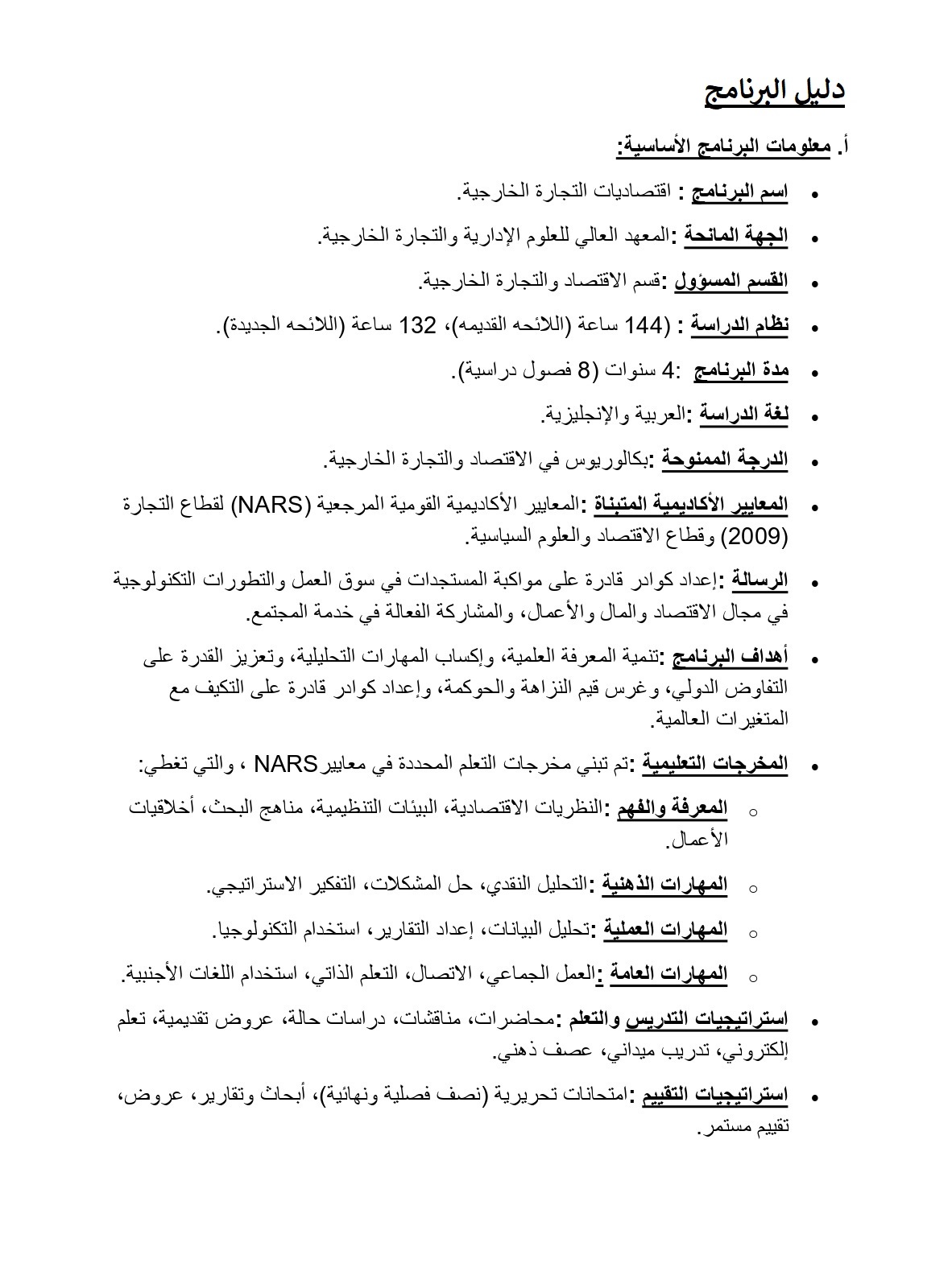 يُعَدّ البرنامج من أهم التخصصات التي تواكب متطلبات سوق العمل في ظل العولمة والانفتاح التجاري، حيث يجمع بين العلوم الاقتصادية النظرية والتطبيقات العملية في مجالات التجارة والاستثمار الدولي .